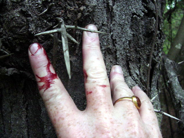 April 21, 2003 Symbols of Christ and Easter  Many believe that Jesus was crucified on a Wednesday and it was on that day while establishing a new trail through the forest to the peninsula where we hold our Sunset Services (www.sunsetservices.org), that I looked up, at what I had believed for years to be a mature pine tree, and the bark was covered with thorns! It was a huge locust, a species that I have always called a Crown of Thorns Tree. Saturday is believed by many to be the day of Jesus resurrection and on this day I was preparing for our traditional Easter Sunrise Vigil. (www.eastersunrise.org) Many signs had appeared pointing to the sanctity of this special day. A lone Pelican had flown past my parents house just moments before I had arrived for lunch, and then, a few minutes later a young eagle flew by, pausing for a moment to dive to the water in search of fish. After lunch I went to the Cathedral to sit on the boulders above Hippo Rock. The waves were crashing toward the Hippo and jets of water splashed through his stone eye socket. I looked up toward the bush that serves as home to the great Diamond Back Water Snake that guards the Rock of Anointment. She had just shed her skin and was curled up in the branches of the bush. Her poise and beauty and lack of fear of me was inspirational. (visit www.godlovessnakes.org) Only the day before, I had taken two visitors to view the Hippo Rock and Gods great serpent was snoozing on the warm rock. Much to the shock of our visitors, I lay down beside her and gave her a brief caress with my fingers. She did not move except for turning her head to stare at me with a Mona Lisa gaze. I sat in a bench by the Cross for a moment, to watch the mysterious action of the waves as they danced to and fro in the sporadic sunlight, and then returned to the jeep that was parked near the small Crown of Thorn Tree that had been chopped down by mistake by my fathers pyramid builders. It was sprouting new growth from the stub that remained. Just in time for Easter!!! Returning to the trailhead I began to forge my way through a dense thicket. A thorn pierced the skin of my finger. I pulled it out with my teeth and my finger began to bleed rather profusely, leaving a strange design of drying blood. The pain from this tiny thorn was momentarily intense, and looking down at the flowing blood, I couldnt help but think of Jesus agony on the Cross. As I made my way deeper into the forest I began to see the faded petals of Dogwoods on the forest floor, in a spot where I had never seen any before. Looking up, there were three small examples of the tree that according to tradition served as the Cross of Jesus Crucifixion. The three Dogwoods standing in a row reminded me of the three Crosses at Golgotha but were far too small to serve for crucifixions, and thus reminded me of the legend of the Dogwood and its admonition by God to never grow large enough to serve as a cross of crucifixion again. As it was growing late in the day and I was tired, I returned to my jeep only to discover that a branch had become stuck beneath it. I tried to pull in out with my bare hands but it was covered with thorns. I took my clippers to grab it to pull it out. When I achieved success, I clipped off the end of one of the branches to examine the thorns. There were three of them and each was in the shape of a perfect CROSS!!! Ethicius I From the Holy Trinity Wilderness Cathedral To be included on our member list, please send us an e-mail and provide the following information: Your name, address, and e-mail address. Please feel free to share your thoughts and opinions. We would love to hear from you! Click here to e-mail us! This site is sponsored by BibleLands.com Related Sites Home | |