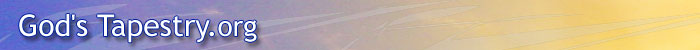 When God finished weaving His TAPESTRY OF LIFE He looked down and was pleased. Never before had He created such a beautiful and marvelous mosaic designed by weaving together into a delicate and intricate web, each of the millions of species which gave His tapestry its essence, its ever changing beauty, and its sacred nature. Tragically, His crowning achievement, the very species which God created to be the protective stewards of His tapestry which He called His "Precious Web of Life", is the very species which is destroying His amazing and irreplaceable tapestry. Today, when God looks down on the tattered remnants of the original beauty and wonder of Planet Eden, He is greatly saddened, for His human family, instead of protecting and defending His TAPESTRY OF LIFE, have spent their energy burning, bulldozing, drilling into, blowing up, clear-cutting, and defiling all that God had created for the perpetual benefit of His human children. God cries when He sees His human children chainsaw His glorious redwoods, harpoon His magnificent whales, poison His pure waters, pollute His fresh air, and commit wholesale gene-o-cide and other heinous crimes against His goodness and generosity. God becomes angry when He watches many of the very humans He had the most faith in, attending churches in their finery, pretending to love Him, and then returning to their lustful pursuit of money derived from butchering His TAPESTRY OF LIFE. Repent now, before it is too late. If you are guilty of tearing asunder even one thread of God's tapestry you may find that you will be "left behind" when Jesus returns in all His glory for as it is written, "Those who destroy the earth shall also be destroyed". (Revelation: 11:18) Related Sites God's Tapestry is sponsored by BibleLands.com | We would love to have you join us! To be included on our member list, please send us an e-mail and provide the following information: Your name, address, and e-mail address. Please feel free to share your thoughts and opinions. We would love to hear from you! How you can Help Click here to e-mail us! |