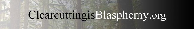 every creeping thing that creepeth upon the earth; that they may breed abundantly in the earth, and be fruitful, and multiply upon the earth." (Genesis 8:17) Tragically, our world has been cursed with an overabundance of greedy men and women who view God's creation as a personal bounty to plunder and destroy. Of the many forms of such plunder clearcutting is perhaps the most evil. Clearcutting is not only a crime against humanity; it is a contemptuous form of blasphemy. Defiling God's creation in order to worship the graven images upon the faces of hundred dollar bills is an insult to God far worse than merely taking the Lord's name in vain in a fit of anger, or displaying a momentary carnal weakness. The senseless destruction of creation caused by clearcutting God's forests leads to floods, extinction of species of untold value to the future of humankind, depletion of soils, and ultimately famine and death. "Hurt not the Earth, neither the seas nor the trees