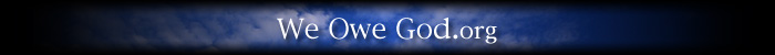 | Why do WE OWE GOD?, you might ask. I never borrowed anything from God, you might say. Well, be prepared to explain to God why you dont feel like you owe Him anything. Here are a few questions God might ask you, when and if you happen to arrive at the Pearly Gates: Who gave you life? Who do you suppose provided you with the air that you breathed several times a minute throughout your life on Planet Eden? Who provided the soil and water that grew your food? Who looked after you when your did stupid self-destructive things to yourself and then begged me to help you out of your difficulty? Who forgave your many, many sins? Who gave you the brainpower to find work with which to provide for the children that I blessed you with? Does the above jog your brain? Have you ever stopped to thank God for all the many blessing He has bestowed upon you, including life itself? Now are you going to tell me that you dont understand why WE OWE GOD? If you now admit that you really might owe God, are you not wondering how you might repay God? Repayment is really quite easy. No, you cant write a check, place it in an envelope, put a stamp on it and address it to God c/o Accounts Receivable, Heaven, The Universe. That would be clever but I doubt if God would be terribly amused. Instead, why not repay your debt to God by doing a few good deeds. Following are just a few examples of ways to pay your debt to God: 1. Feed Gods birds in Winter. 2. Visit a senior citizens home and show a lonely person that you care about them. 3. Purchase as many acres of Gods Creation as possible and dedicate it as a Wilderness Cathedral. 4. Become a vegetarian or at least eat the flesh of Gods animal children only on rare occasions. 5. Walk to your destination whenever possible. 6. Contribute to the many Ethician charitable programs to help God protect and preserve Planet Eden. To be included on our member list, please send us an e-mail and provide the following information: Your name, address, and e-mail address. Please feel free to share your thoughts and opinions. We would love to hear from you! This site is sponsored by BibleLands.com |